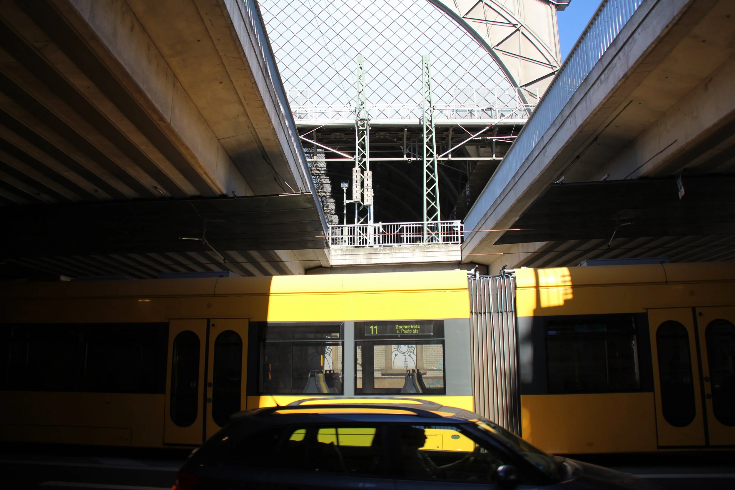 Eine Tram am Neustädter Bahnhof
